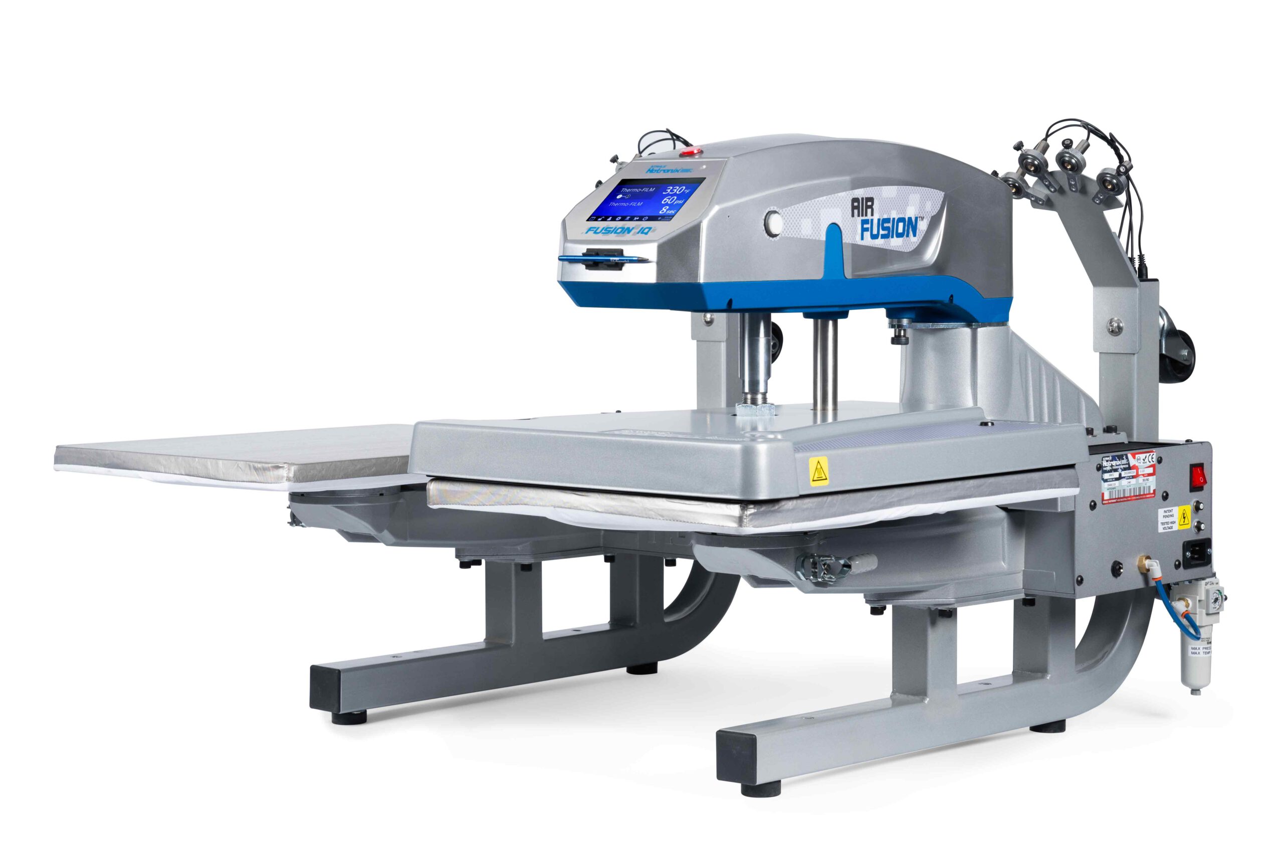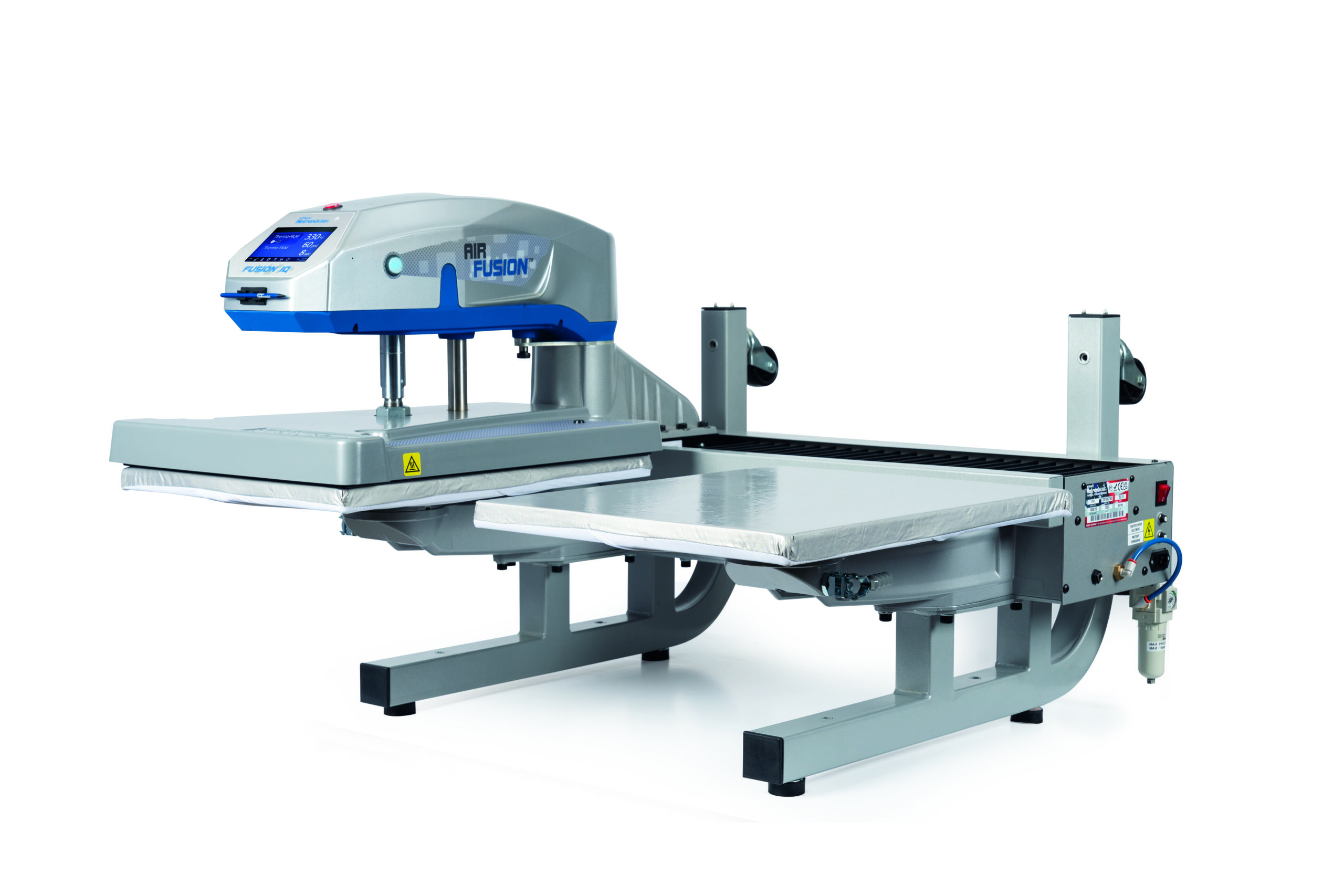 La presse à transferts Dual Air Fusion IQ® existe avec ou sans laser de positionnement.